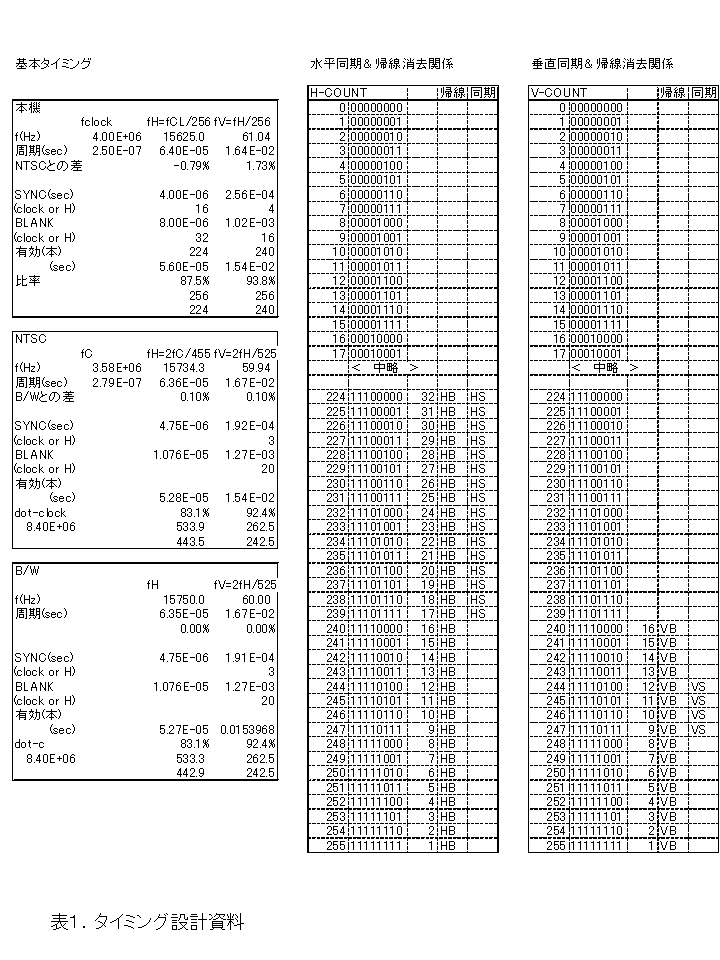 4MHzの元発を8bitの同期カウンタ(Hカウンタ)で1/256分周し15.625kHzを