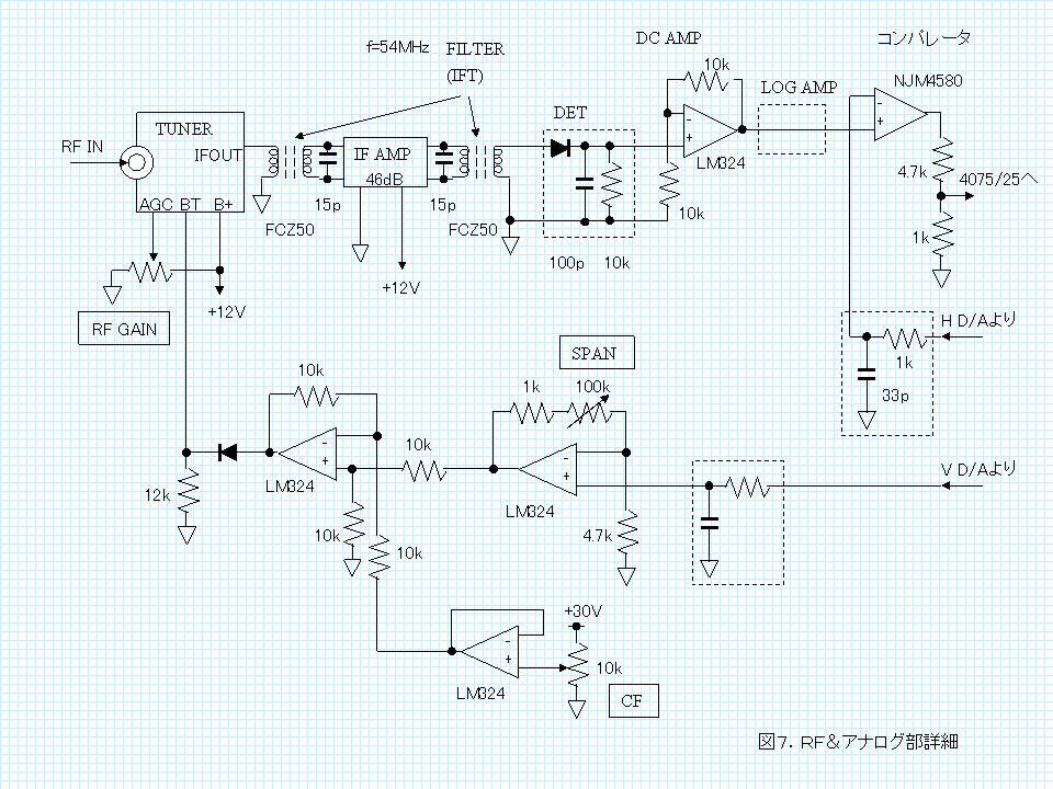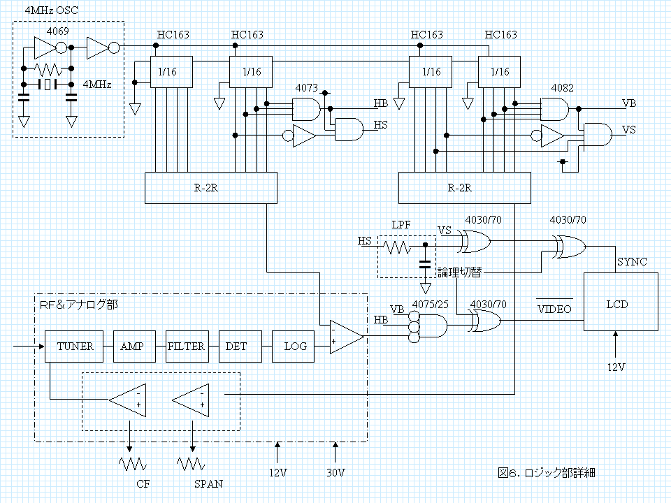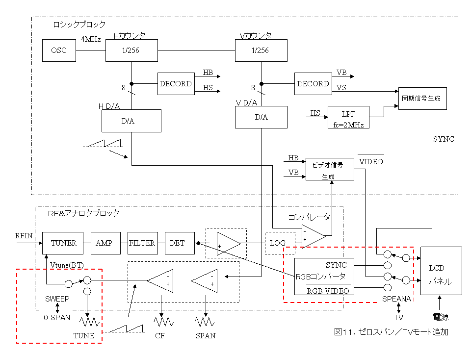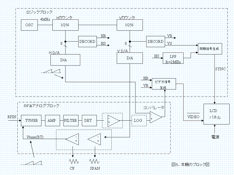 スペアナの基本機能の実現と、ビデオ信号をなるべく簡単な回路で生成する