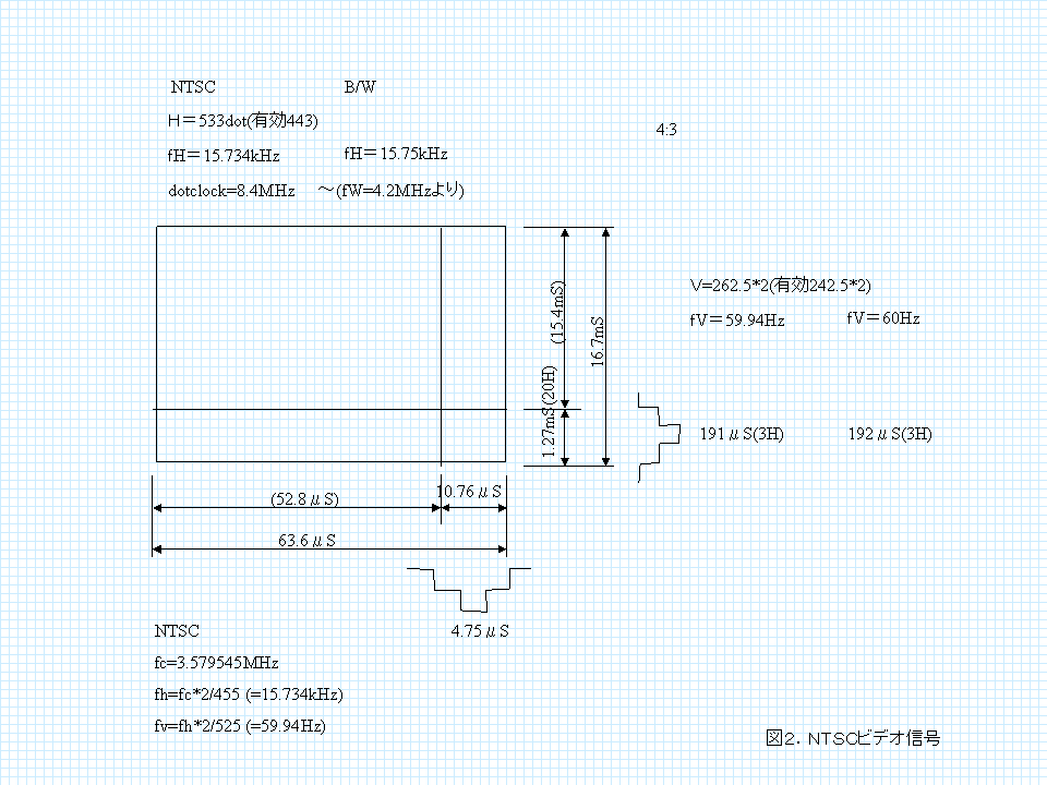 以下がNTSC規格(日米のカラー放送規格,詳細後述)をベースとした