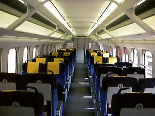 車内をよく見ると天井のカーブがなんとなく787系「つばめ」の天井に似ている。