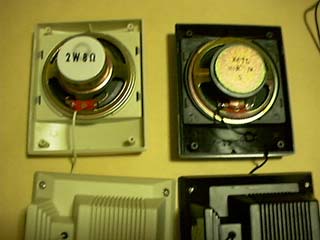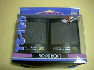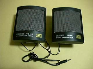 パッケージ外観 本体と付属ケーブル 口径70mmのスピーカで購入価格は680円。定価は4000円と書いてある。 メーカーはパッケージの印刷によると、アンプ付きのTS・250と同じ、 TOKYO MARK Co.,Ltdである。 使用されているスピーカはインピーダンス8Ωで最大入力2Wの 非防磁型である。 音質は口径がある分低音が出るが、少々こもりがちである。 (SP−680等よりやや悪い) プラグは3.5φステレオ・ミニプラグでストレートタイプである。 (金メッキではない。) ケーブル長は1.1mである。なおユニット間についてはケーブルを 割けばケーブルのある分だけ広げられるタイプで、ケーブルを割いて しまった後だったので購入直後どうなっていたかは定かでない。 内部についてはハンダ付けは比較的きれいだった。 写真は次のMBC−7の項で説明する。