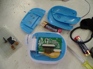 現状ではDCモータを回す技術しかありませんので、「モータでひもを巻き取りフックをはずす」という簡単な機構で製作しました。
