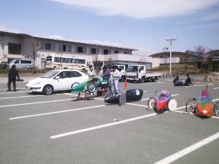 また来週5月3日〜4日のワールドエコノムーブに備え、会場内で今年のマシンの最終テスト走行も行いました。
