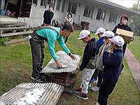 その後、山菜汁とおこわを地域の方々と一緒においしくいただきました。 |