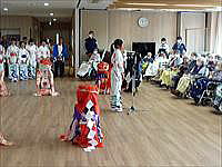 6年生が特別養護老人ホーム寿泉荘で、獅子踊りを披露しました。入居している方々から「歴史のある獅子踊りを初めて見ました。素敵な踊りで涙が出ました。」などの感想をいただきました。 |