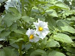 ジャガイモの花です。ジャガイモは茎が成長したものなので、花はあまり関係ないようですが、りっぱに花を咲かせます。