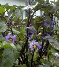 丸茄子の花です。鮮やかな紫色の花です。花の季節は結構長く2か月間程楽しむことができます。
