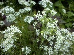 ニラの花です。ニラは初夏の頃に食べてしまったのですが、また来年食べられるように数株残しておきます。それが、晩夏の頃に白い花を咲かせました。