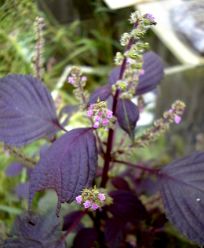 シソです。別に栽培しているというわけではないのですが、種がこぼれて、畑のあちらこちらに自然に生えてきています。 (撮影日 00/09/18)