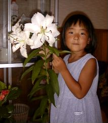 カサブランカだそうです。真っ白なとても大きな花です。ユリの仲間だと思います。