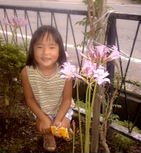 ナツズイセンです。春のうちに葉だけが出てきて、いったんその葉がかれます。そして夏になると花だけ咲くというおもしろい花です。写真を見ても、葉がないのがおわかりいただけると思います。ピンクのかわいらしい花です。