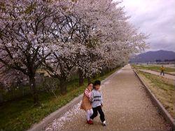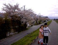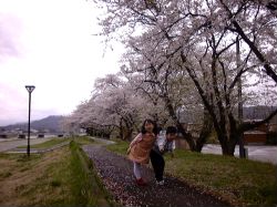 我が県の母なる川、最上川沿いの桜です。まちの桜の名所として、新聞の開花情報に載る場所です。天気が今ひとつで、桜の美しい色合いが写らず、残念でした。