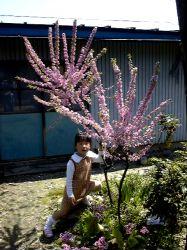 名前がわかりません。まだ背丈が小さな木にピンク色の桜のような花がびっしり咲いています。後に赤い実がなるとか・・・・。名前を知っていたら教えてください。(撮影日99/05/02)