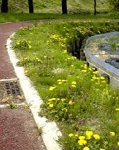 ごく普通に見られるタンポポです。西洋タンポポのようです。この辺りでも、和タンポポはなかなか見られなくなりました。花の下の緑の部分がめくれていると西洋タンポポで、めくれていないと和タンポポですよね。(撮影日99/05/03)