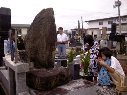 たいきもはじめてご先祖様のお墓の前で手を合わせました。この辺りは、8月13日に墓参りに行きます。
