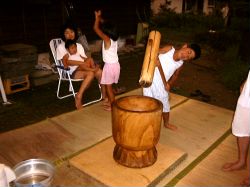 Takahashi家では、盆と正月に餅つきをします。この日もお墓参りの後に餅つきをしました。ゆうきも一生懸命に餅をこねたり、ついたりしました。