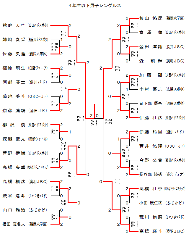 | BS4-23 | ‰œ‰H‚i‚a‚b | ûü‹´ ‰l“l | ‚Q | 15- 0 15- 4 | ‚O | ‚‹´ ‘s‹G | ‚È‚ñ‚΂ÇJr.C. | |