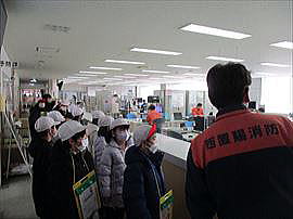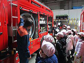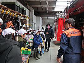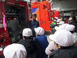 | 2月9日(月) 3年消防署見学 社会科学習の一環として、消防署を見学させていただきました。教科書を通して学んでいるものの、実際に消防署の施設や、本物の救急車、消防車などを見せていただくことで、教室の学習では気付けないたくさんの発見がありました。消防署のみなさん、どうもありがとうございました。 |