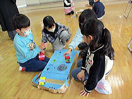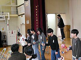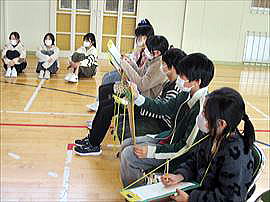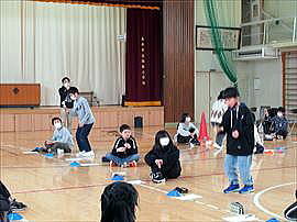 | 2月26日(木) 2年 1年生と遊ぼう 生活科の学習で、手作りのゲームや遊びで1年生と一緒に楽しむ「1年生と遊ぶ会」が行われました。相手が楽しむにはどうすればよいかを考えながら、会の企画や遊びの工夫を行ってきました。1年生・2年生ともに楽しめ、とても盛り上がった素敵な会にすることができました。 |
