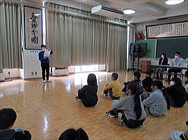 | 5月19日(月) 葉山塾(3・4年) 葉山についての見識を広め葉山登山に対する意欲を高めることをねらい、「葉山塾」を実施しました。 3・4年生の葉山塾では、主に葉山の自然や歴史などについて講師の先生からお話をお聞きしました。生き物のことなどについて質問も出されていました。 |
