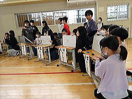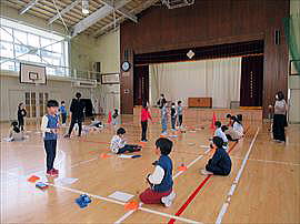 | 5月15日(木) 体力テスト 2・3校時は全校一斉に体力テストを行いました。体育館では上体起こし、反復横跳び、立ち幅跳びを、グラウンドでは50m走、ソフトボール投げを行いました。1年生は6年生にサポートしてもらいながら張り切って各種目に取り組んでいました。 |