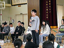 | 10月23日(木) 3年昔語りプレ発表会 長井小町の会の先生方よりご指導をいただいた昔語り。いよいよ学習の成果を披露するプレ発表会です。緊張の中、今まで学んだことを先生方の前で披露することができました。2日後に迫った学習発表会に向けてとても貴重な機会となりました。小町の会の先生方、どうもありがとうございました。 |