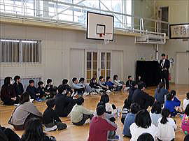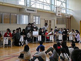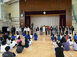 | 2月16日(月) 1・2年AL Talk Day この日はAL Talk Day でした。1・2年生はホールで長井市内の学校のALT(外国語指導助手)の先生方と楽しく活動しました。頭と体と英語をたくさん使って先生方と過ごすことができました。 |