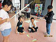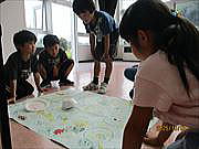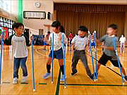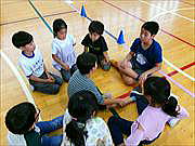 今回は、ぞうきんがけリレーと棒つかみに挑戦です。どちらもチームワークが試されるゲームですが、学年が違っても力を合わせることができる豊田っ子たちですから、激戦になったことでしょう。輪になって話し合う場面では、上学年の子が自然とリーダーになっていました。こうした場でも、子どもたちのよさを引き出していただいていることに感謝申し上げます。 |