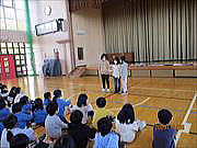 1・2年生が企画した年長さんとの交流会。学校では「低学年」な子どもたちですが、年長さんを前にしたせいか、とても大人びて見えました。でも、心の中では「うまくいくかな」「喜んでもらえるかな」とドキドキしていたことでしょう。みんなのそんな気持ち、きっと伝わっていますよ! |