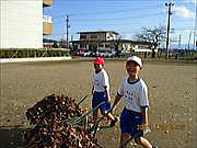 11月とは思えないほどの晴天でした。ボランティア委員会が中心となり、全校生と長井校の友達とでグラウンドの落ち葉拾いをしました。豊田小の子どもたちは、本当によく働きます。道具を使って落ち葉を集める人、集まった落ち葉を袋に入れる人、小さい学年の人の手伝いをそっとしてくれる人、何度も一輪車で集めた落ち葉を運ぶ人。それぞれに自分ができることをしっかりやったので、短い時間でしたがすっかりきれいになりました。この日の青空のように、気持ちのいい時間になりました。 |