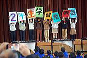 インフルエンザによる学年閉鎖で1週間遅く行った2年生の学習発表会。本当は当日にオープニングを飾る予定でしたが、この日は「2年生学習発表会」特別バージョンで開会の言葉を発表しました。いろいろな楽器を使い、動きや声をそろえて発表する姿がとても楽しそうでした。全身から、「待ってたんだよ!」という声が聞こえてきそうでした。ご家族の皆様にも、たくさんおいでいただきました。何度も足を運んでいただき、ありがとうございました。 |